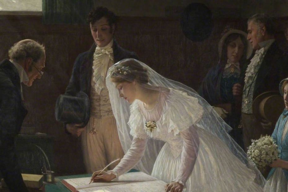 Foto: https://upload.wikimedia.org/wikipedia/commons/d/d9/Edmund_Blair_Leighton_-_The_Wedding_Register.jpg?uselang=es